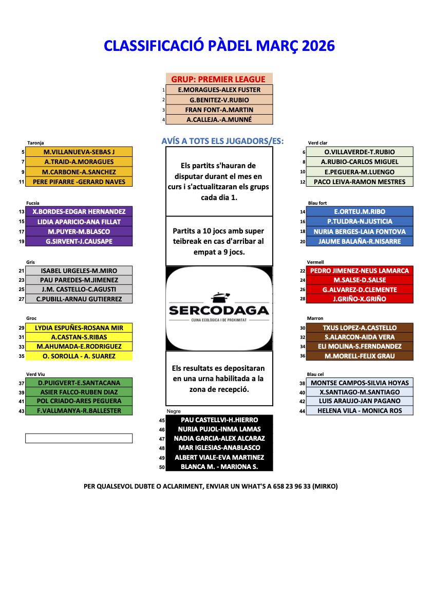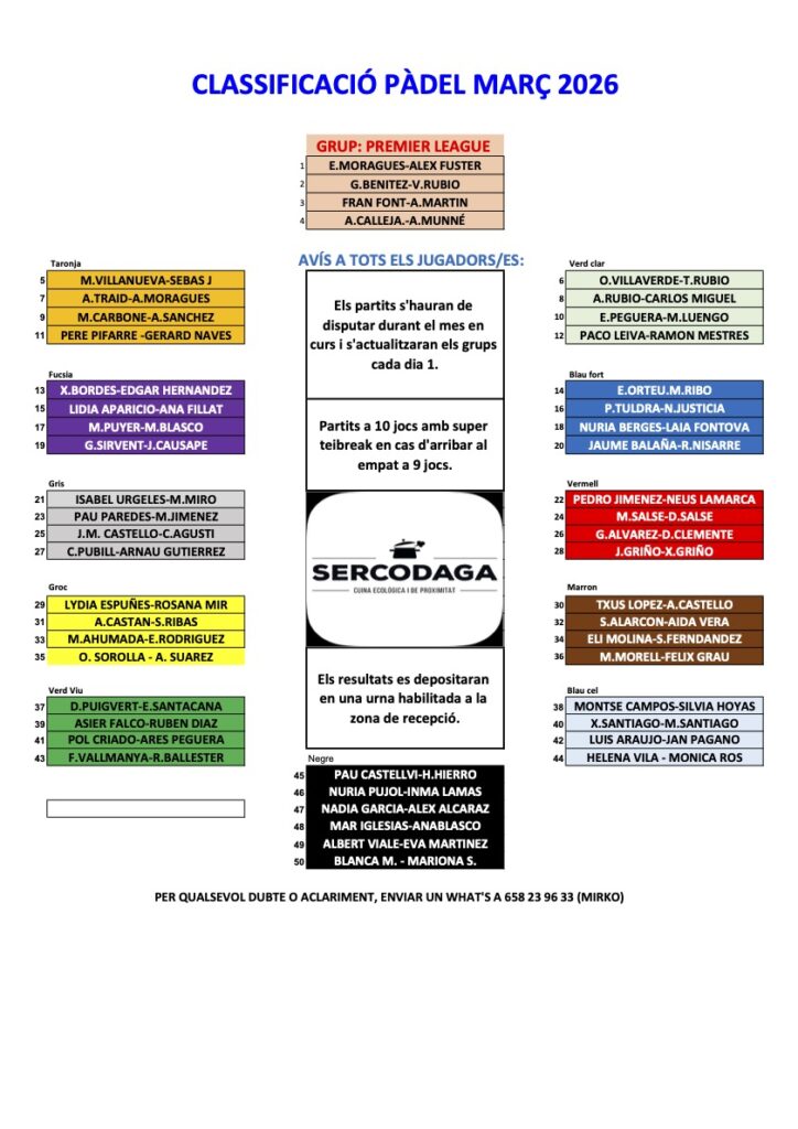 Ja podeu consultar l’actualització del Rànquing de Pàdel 2026 del mes de març.