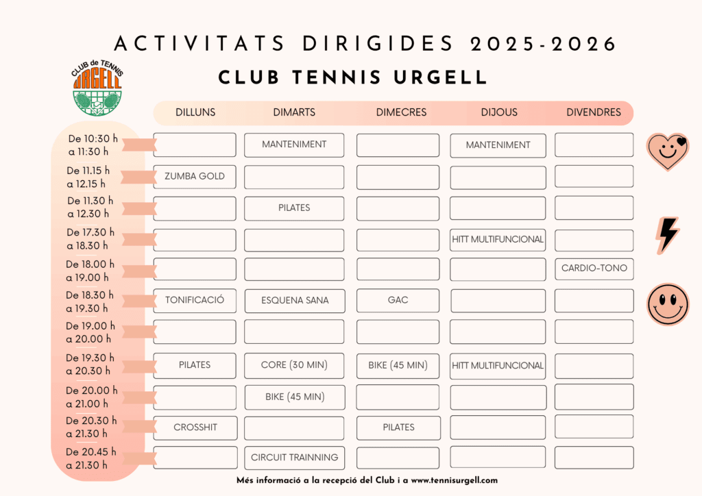 Arrenca una nova temporada d’activitat a la zona fitness de l’Urgell. A partir de l’1 de setembre, aquesta és la nova graella: