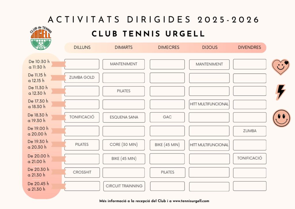 Arrenca una nova temporada d’activitat a la zona fitness de l’Urgell. A partir de l’1 de setembre, aquesta és la nova graella: