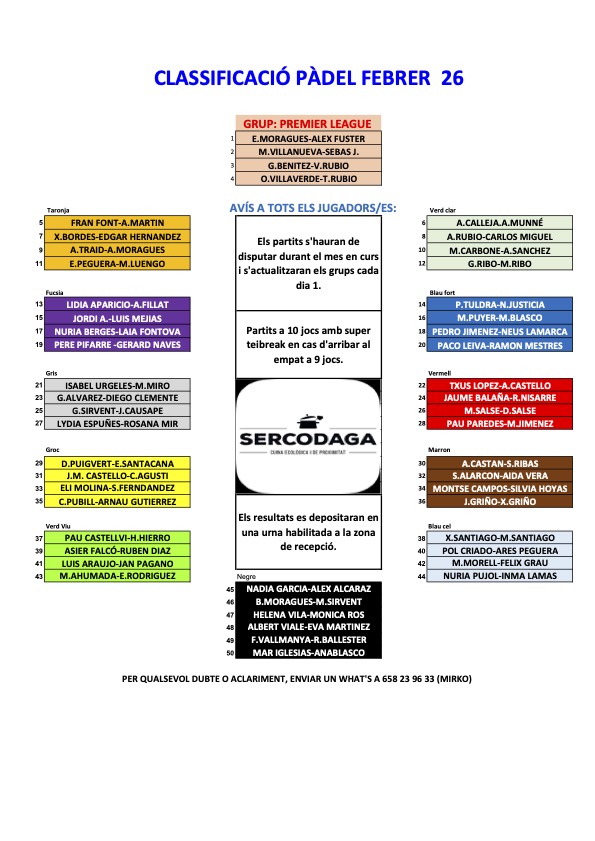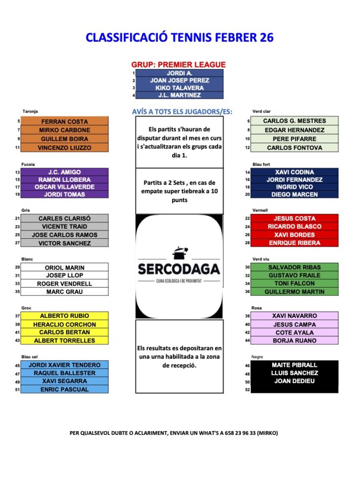 Ja podeu consultar les classifcacions del Rànquings de Tennis i Pàdel corresponents al mes de febrer de 2026.