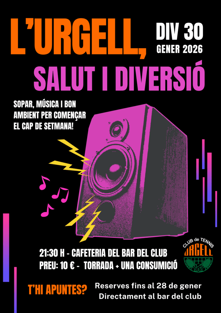 Comencem l’any 2026 amb força. El proper 30 de gener hem preparat una festa per continuar amb el bon ambient i companyonia del Club Tennis Urgell.